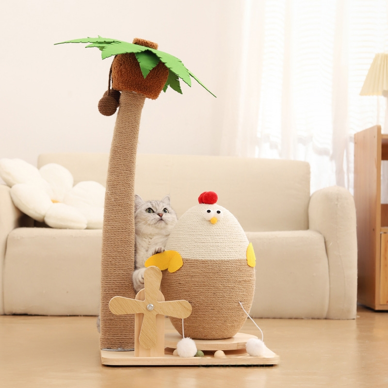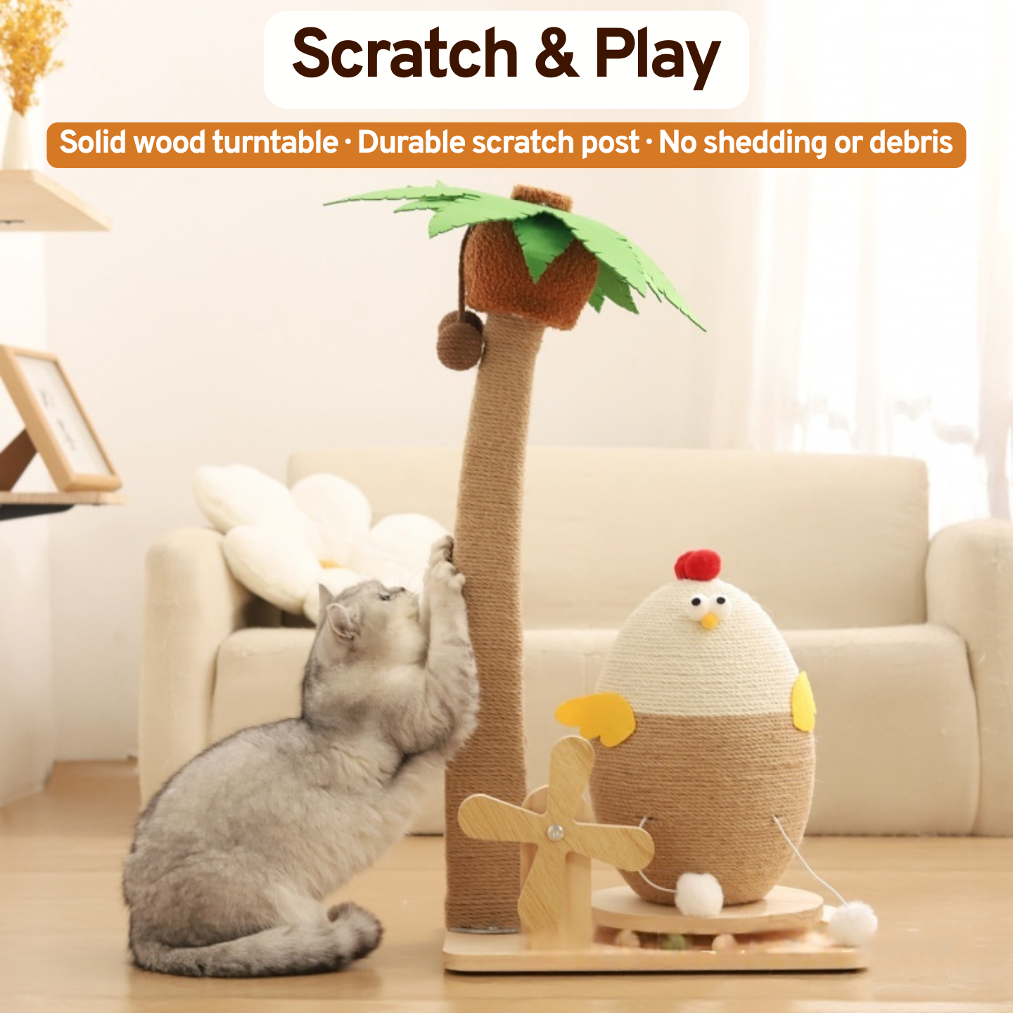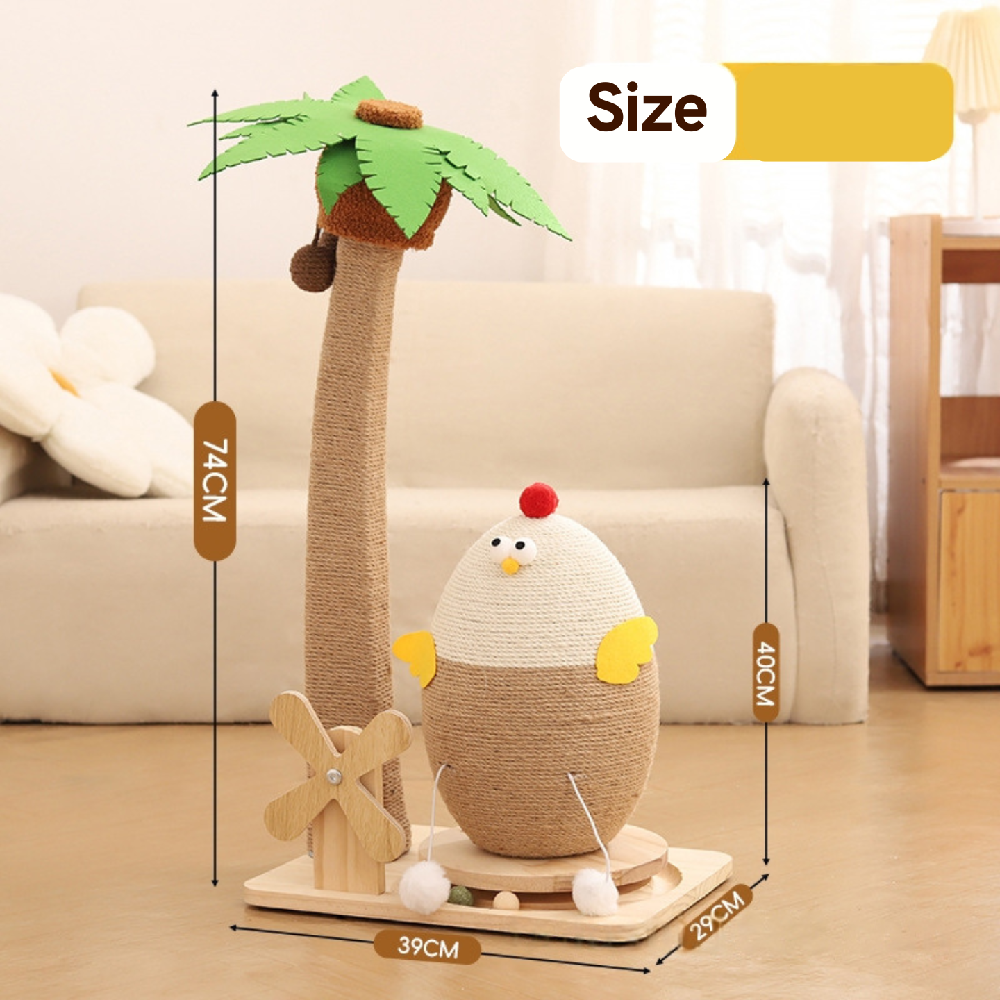 [40CM] Chicken Only Island Tiki Tales] | Coconut Tree Rotating Chicken Cat Toy Cat Scratching Board