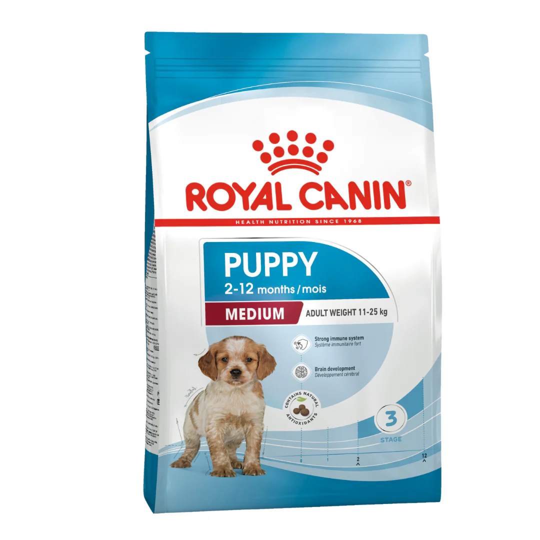 Royal Canin Medium Puppy Dry Dog Food is designed to be a nutritionally complete & balanced diet for medium breed dogs (weighing 11 to 25kg as an adult) aged 2 to 1 year old. Formulated to accommodate a puppy’s fast-paced growing needs, Royal Canin Medium Puppy Dry Dog Food provides them with a higher amount of protein to aid in muscle development.