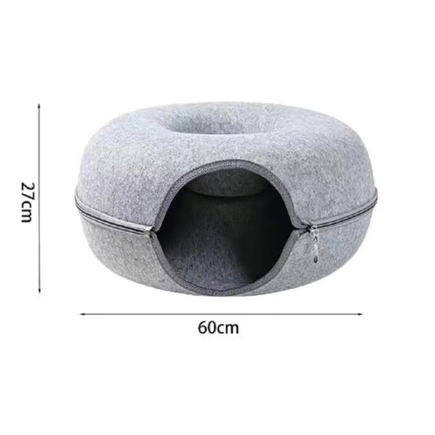 Our Felt Donut Cat Tunnel is a combination nest and cat tunnel pet product made of a soft felt material that provides a comfortable space for your cat to rest and play.