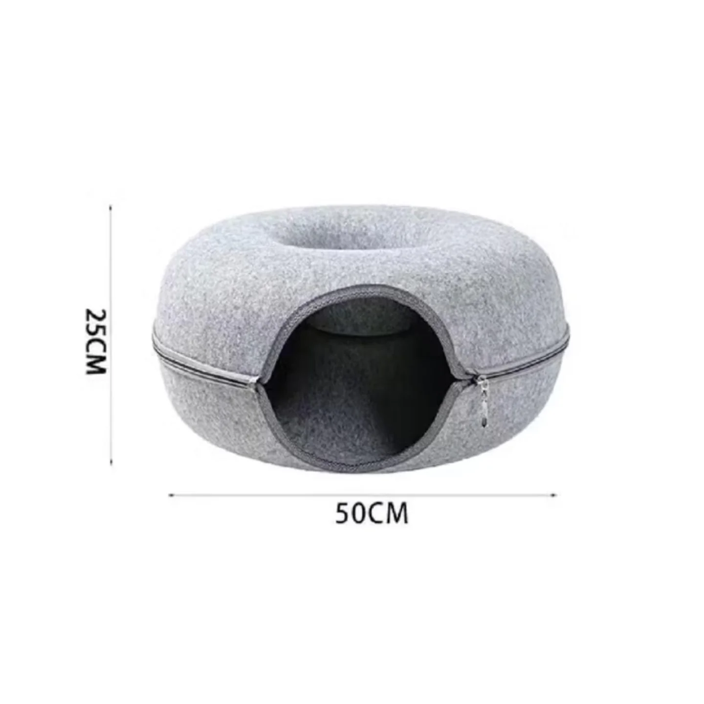 Our Felt Donut Cat Tunnel is a combination nest and cat tunnel pet product made of a soft felt material that provides a comfortable space for your cat to rest and play.