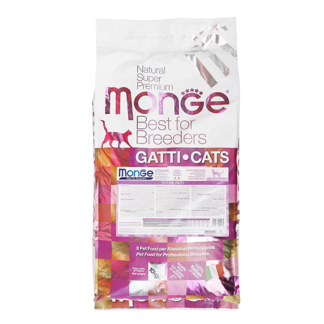 Kibbles Monge Natural Superpremium Sterilised are a complete food for adult sterilised cats.